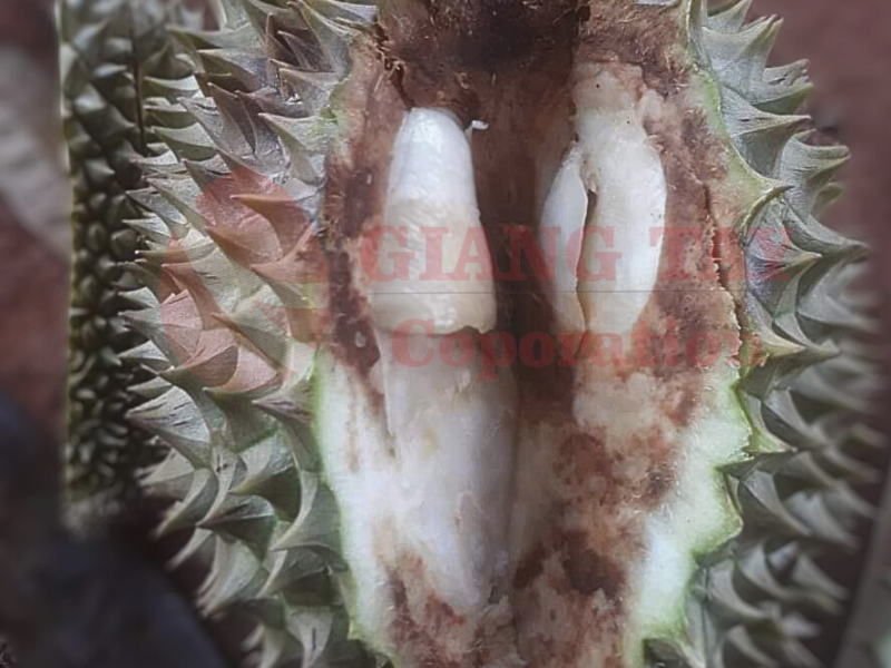 Trái sầu riêng bị thối vào bên trong, bổ ra có mùi chua khó chịu
