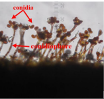 - Các bào tử rơi xuống bề mặt lá sầu riêng và nảy mầm, nhúng vào mô thực vật. Sự xâm lược này ngăn cản ánh sáng đi qua lá, làm suy yếu khả năng quang hợp của cây, dẫn đến giảm hoặc không sản xuất thức ăn. Trong tình trạng nhiễm trùng nghiêm trọng, lá bị quá nhiều bào tử nấm xâm chiếm đến mức chúng khô héo và rụng xuống đất, khiến cây trở nên yếu ớt và trơ trụi.