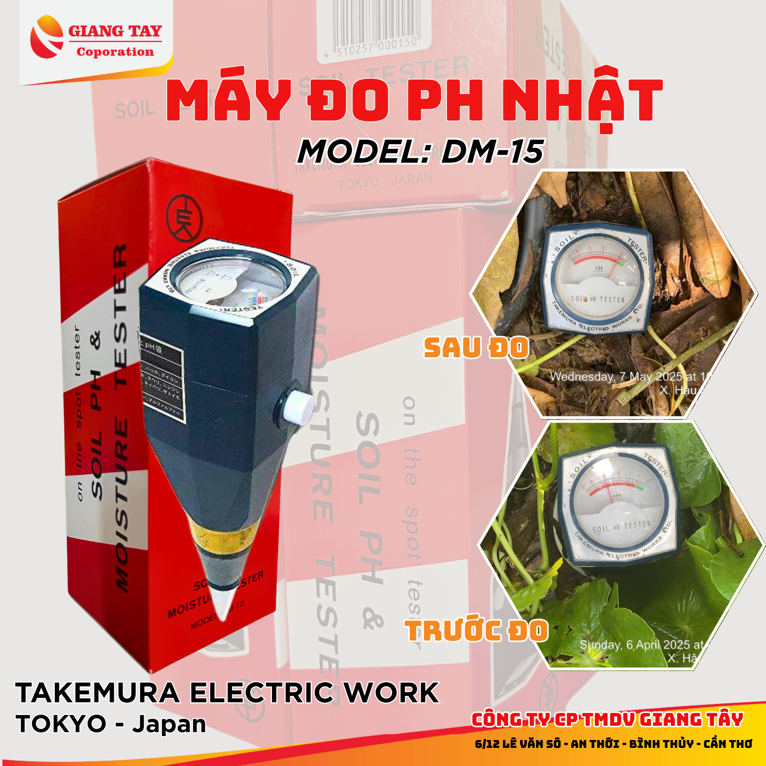 📌 Máy đo pH và độ ẩm đất Takemura DM15 được sản xuất bởi TAKEMURA ELECTRIC WORK – Nhật Bản.