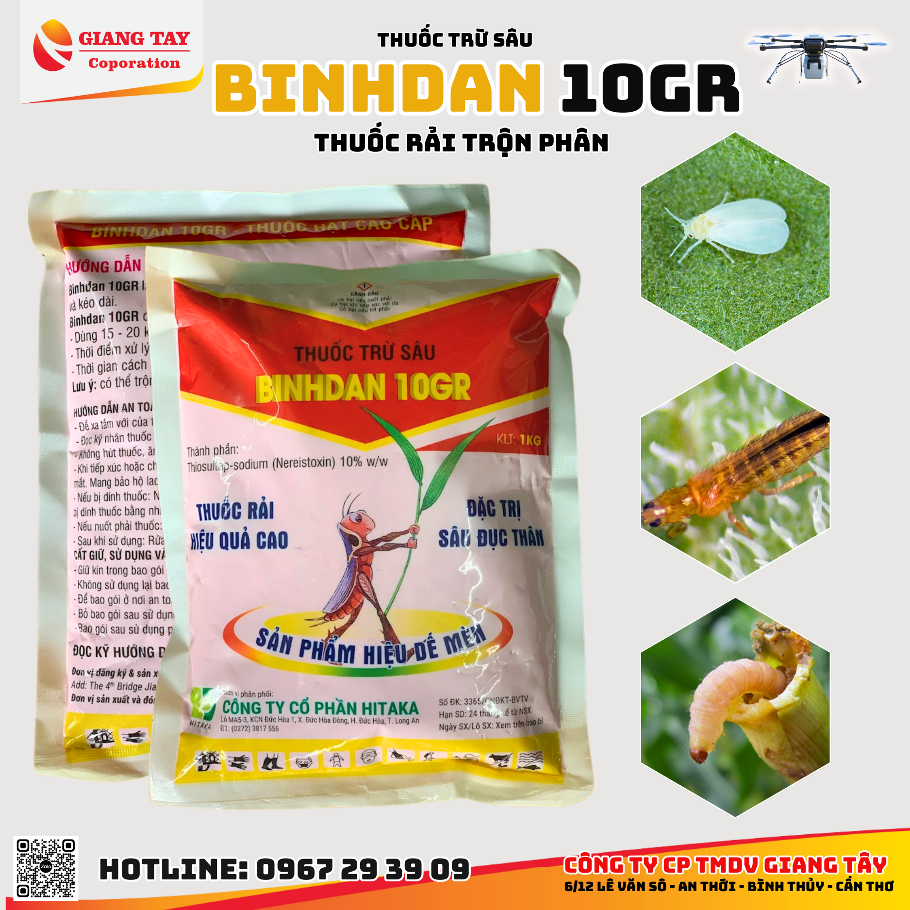 Công Dụng Thuốc đặc trị sâu đục thân - BINHDAN 10GR 1KG