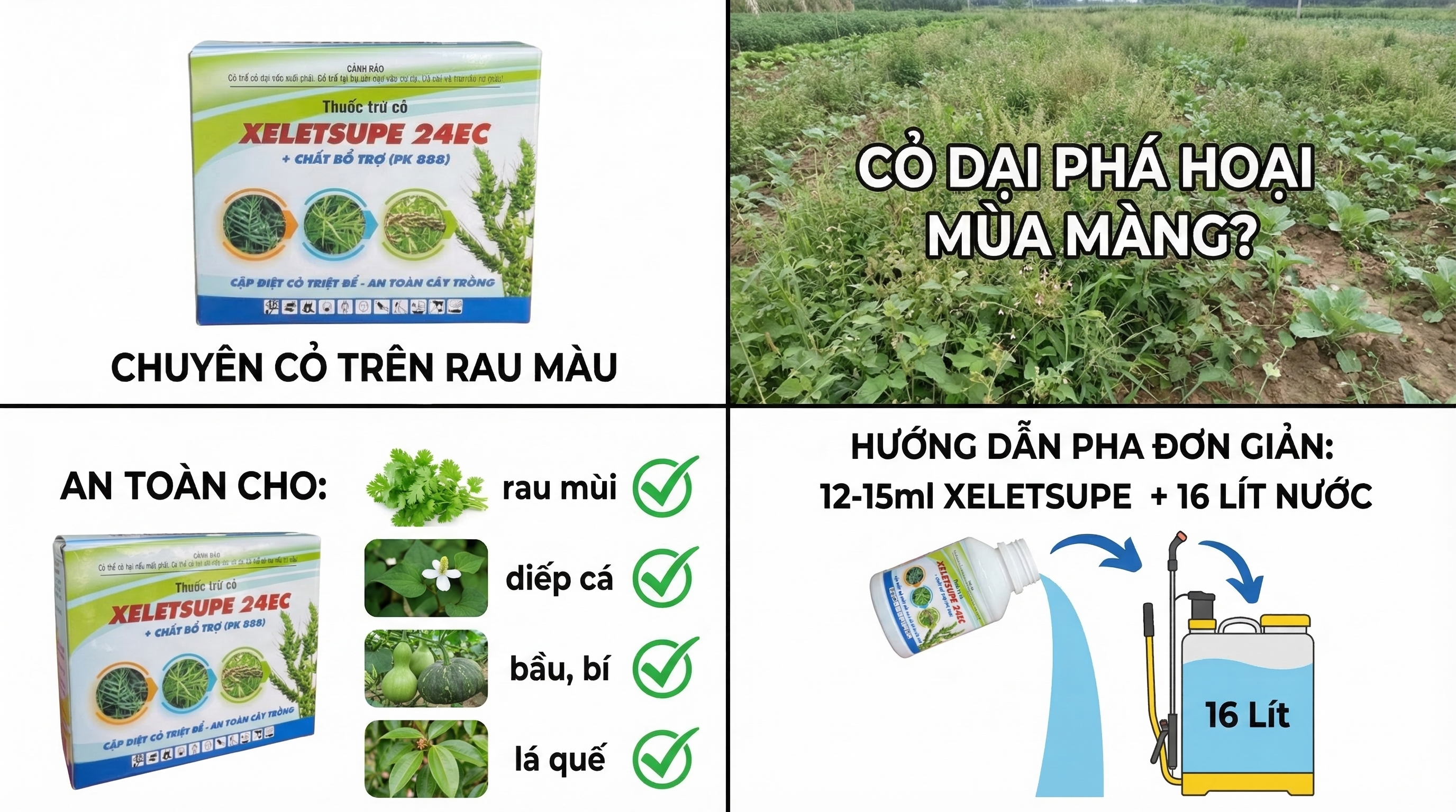 🌾 XELETSUPE 24EC + CHẤT BỔ TRỢ PK888 – CẶP DIỆT CỎ TRIỆT ĐỂ, AN TOÀN CÂY TRỒNG