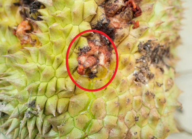 Sâu đục quả gây hại trên sầu riêng